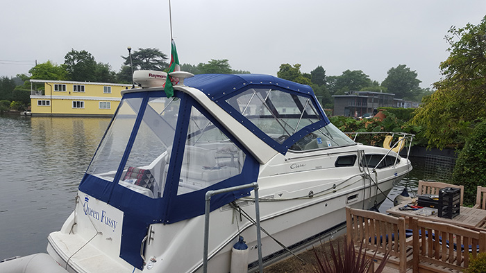 We have recently moved to a house on the river and very luckily inherited a Sealine 25 boat, albeit in very poor condition. We contacted Thames Covers who were fantastic in their response time to visit us and who recommended a refurbishment programme, including a new canopy, new seat covers, new soft furnishings and carpet. The job they have done has transformed the boat and the manner in which they carried out the work was very professional and excellent in all respects. Nothing was too much trouble and the courtesy and attitude of all the staff was great. The job was done at our house and it was done with a minimum of fuss and disruption.